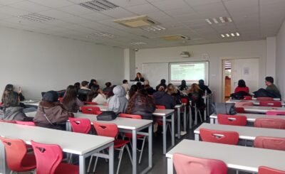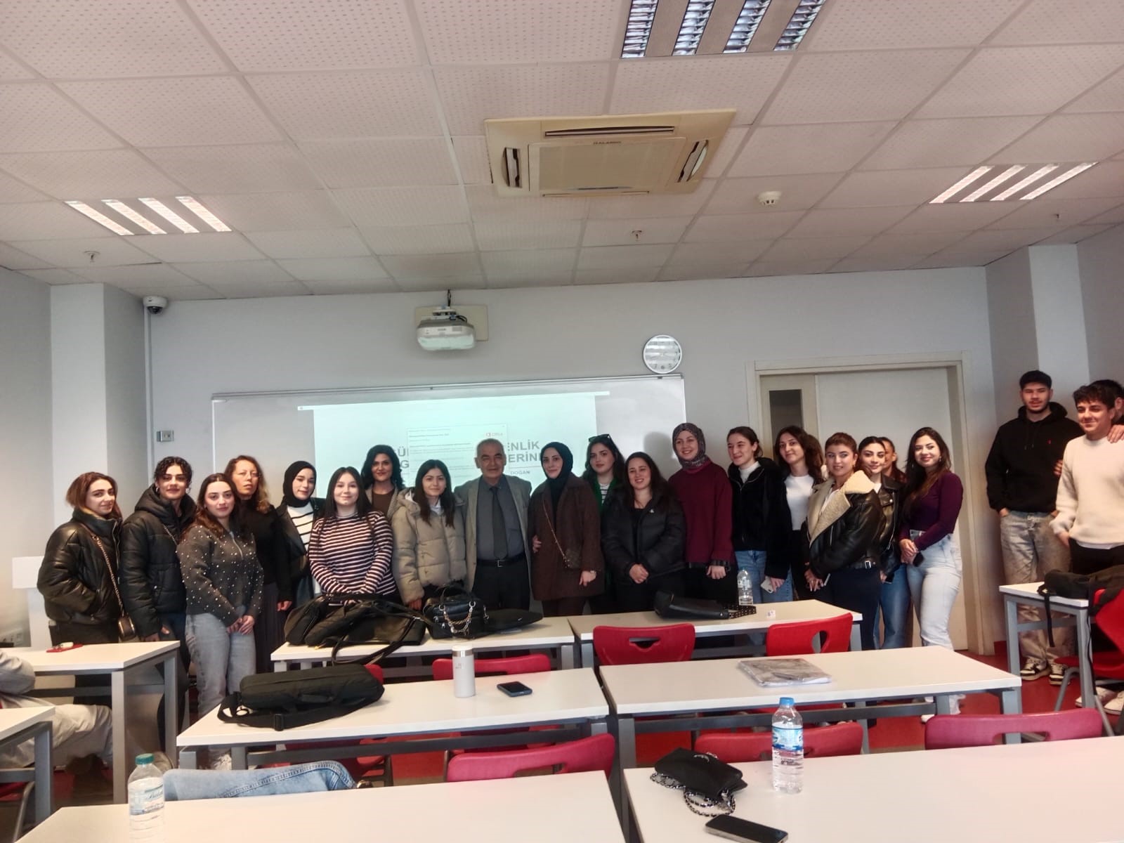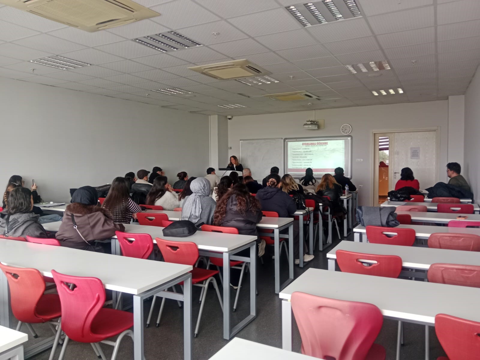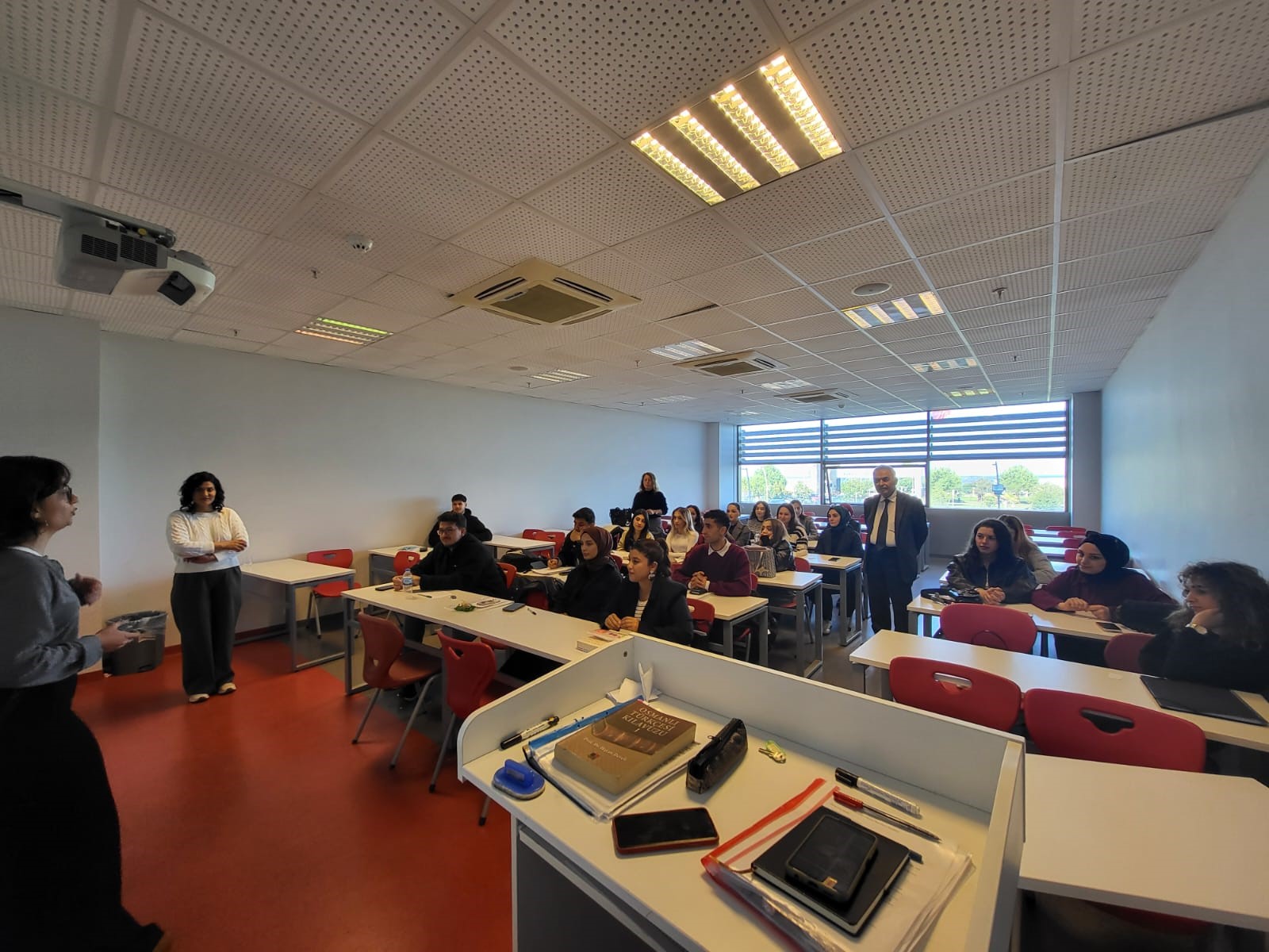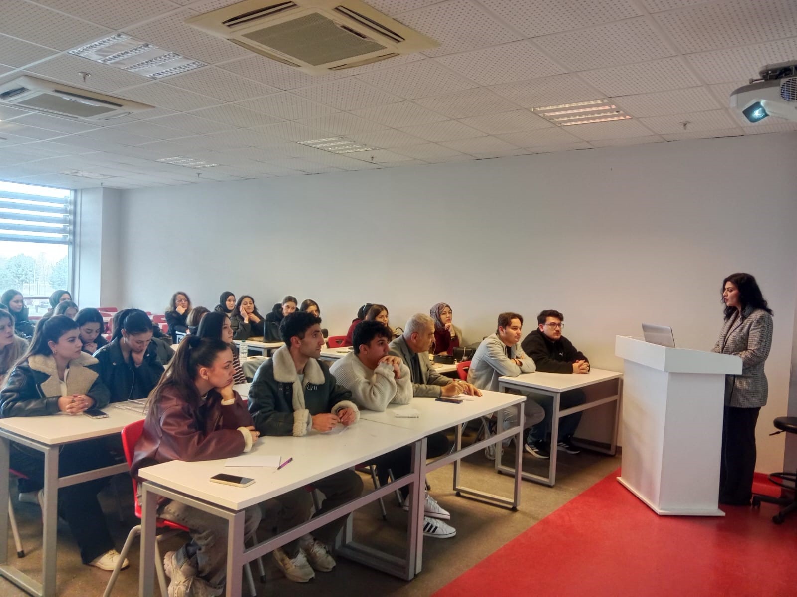 16.12.2025 tarihinde, Yomra Yerleşkesi’nde “Türk Dili ve Edebiyatı Bölümü Öğrencileri İçin Mesleki Yabancı Dil” başlıklı seminer düzenlenmiştir. TDE Bölümü, TÖMER, TDE kulübü ve Kariyer Geliştirme Uygulama ve Araştırma Merkezi iş birliği ile gerçekleştirilen etkinlikte, Türk Dili ve Edebiyatı Bölümü Öğretim Üyesi Dr. Öğr. Üyesi Adiye ŞİMŞEK, Türk Dili ve Edebiyatı alanında kullanılan İngilizce akademik terimler ve bunların Türkçe karşılıkları konusunda bilgi vermiştir. Seminer, örnek sunum planlaması ve çalışma oturumu ile sona ermiştir.
